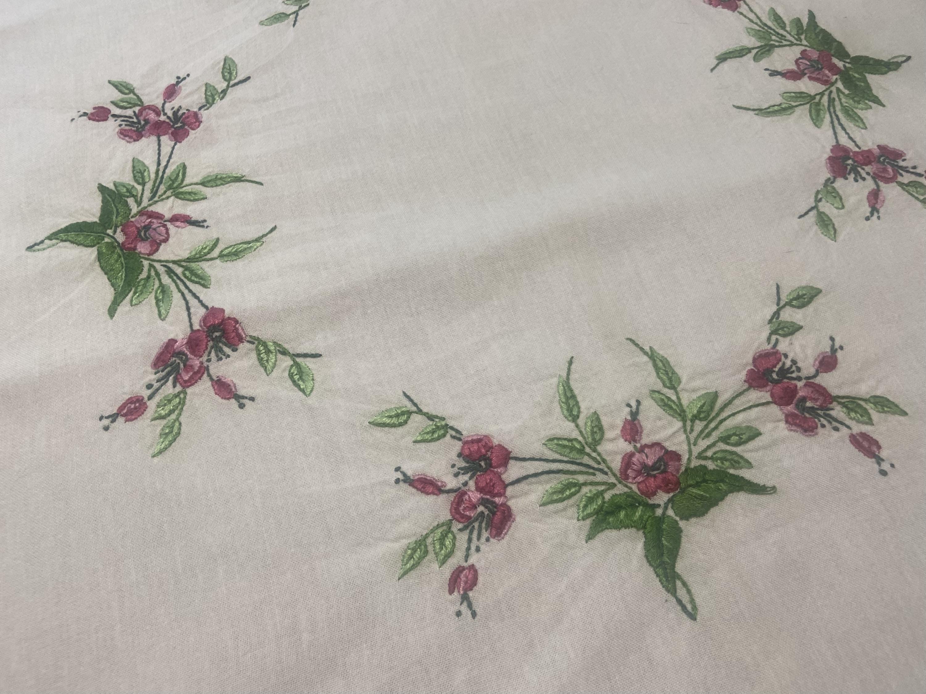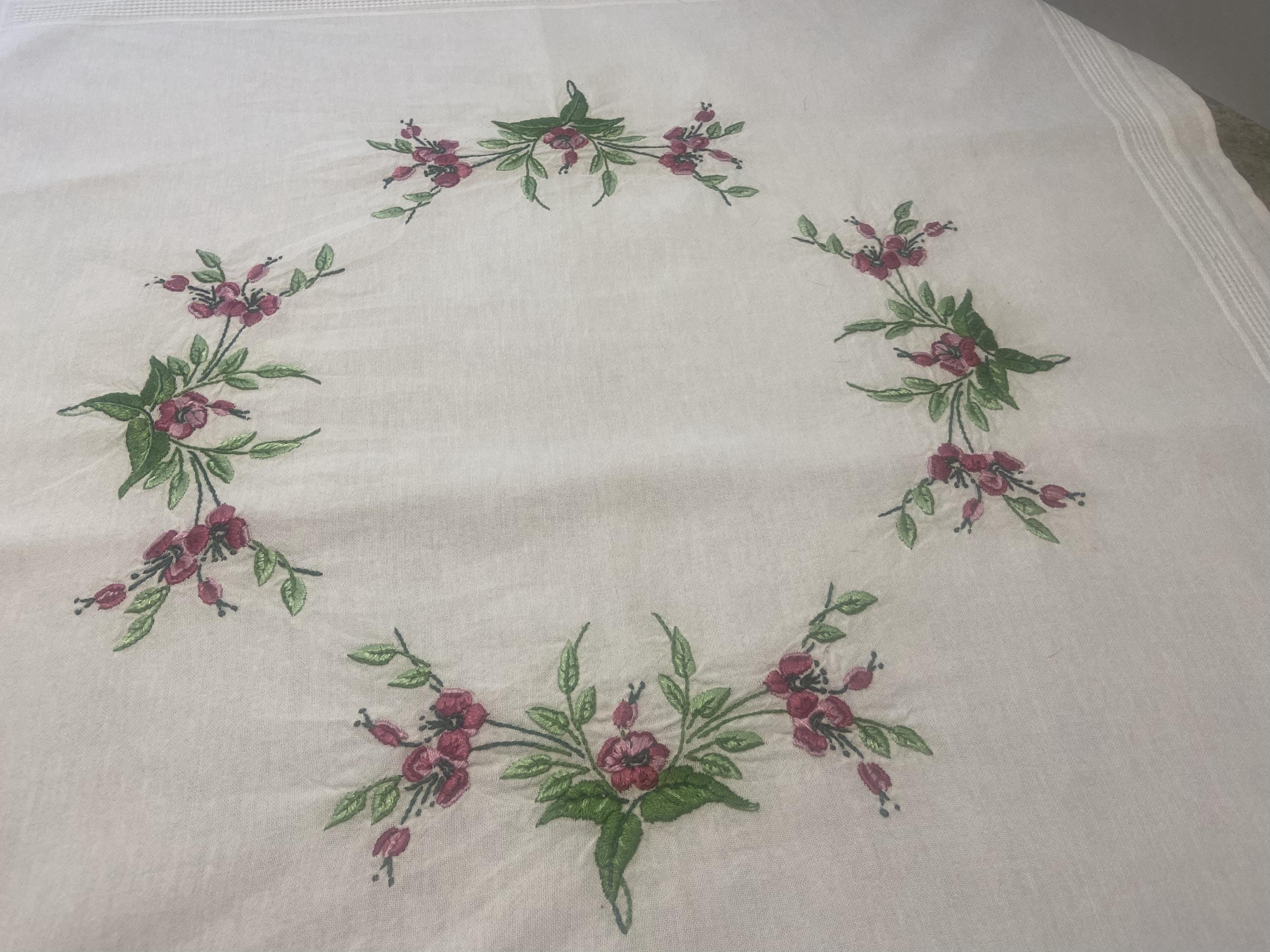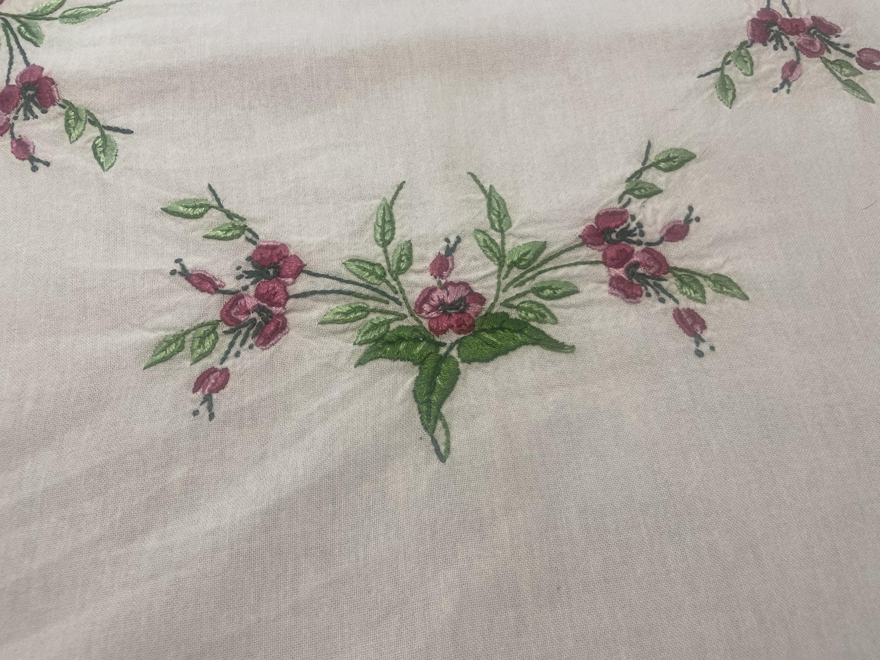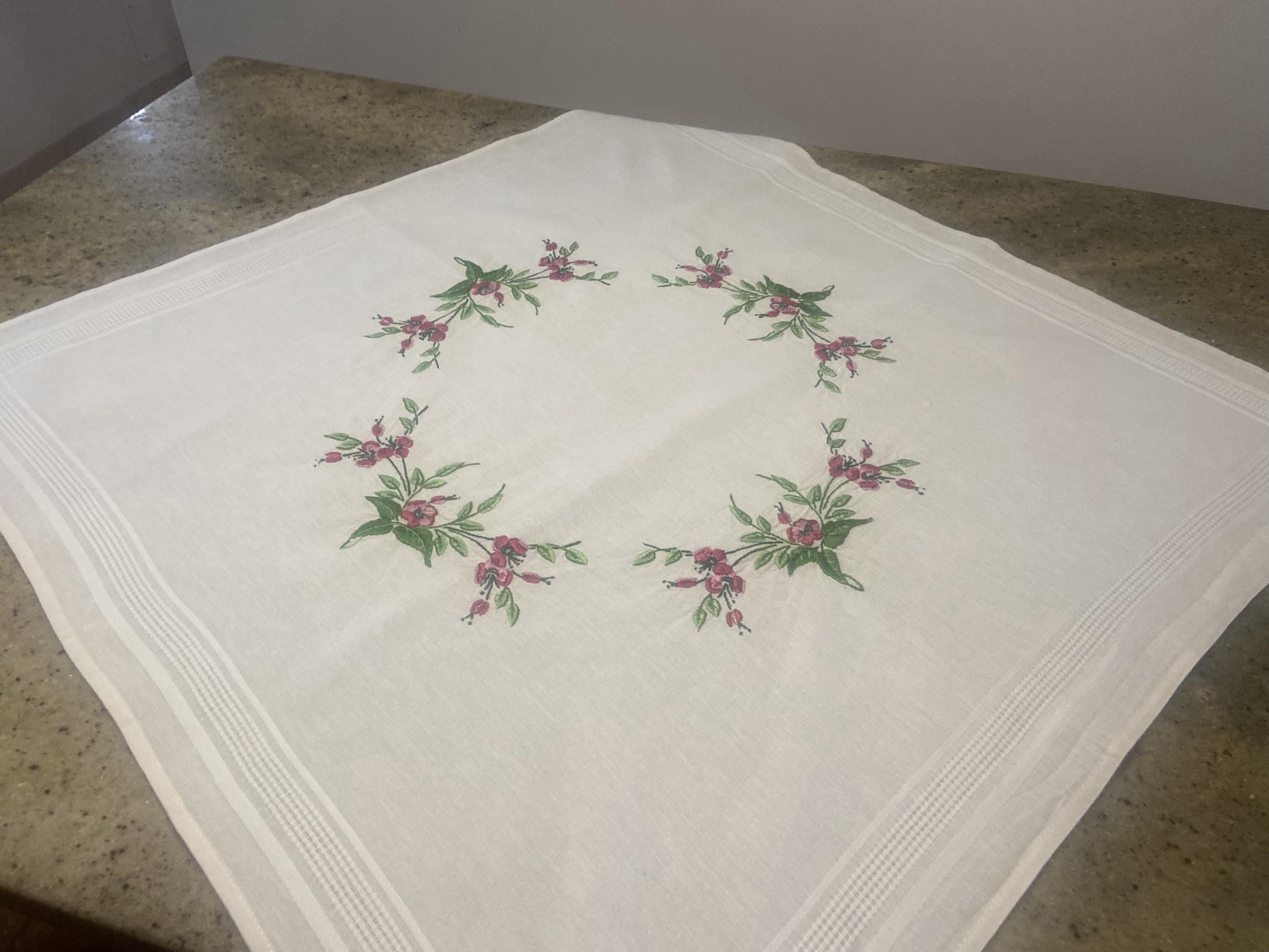 Hand-embroidered tablecloth, white cotton, 80x80 cm, floral design